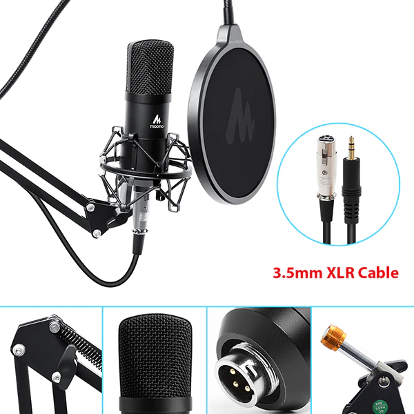 Maono AU-A03 Condenser Microphone Kit Podcast Mic with Boom Arm Microphone Stand (Black)